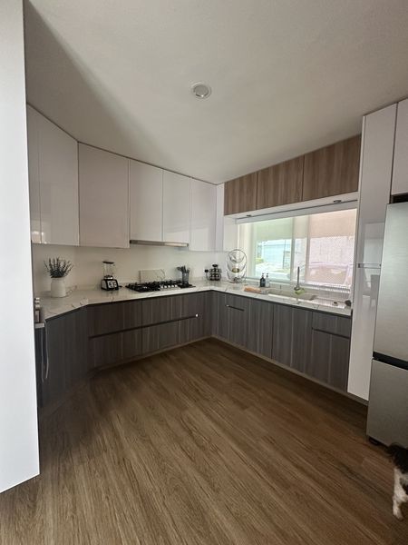 * COCINA INTEGRAL CON PARRILLA, HORNO DE CONVECCIÓN EMPOTRADO Y BARRA DESAYUNADORA.
