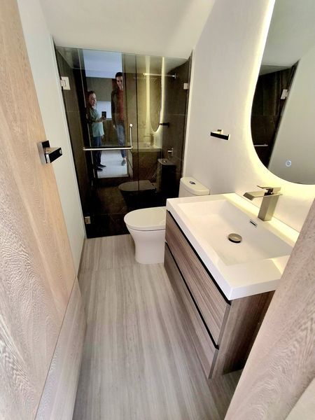 PISO DALTILE PORCELANICO RECTIFICADO DE 60X120 Y AZULEJOS CESANTONI PORCELANICO 45X90 EN ÁREA HUMEDA