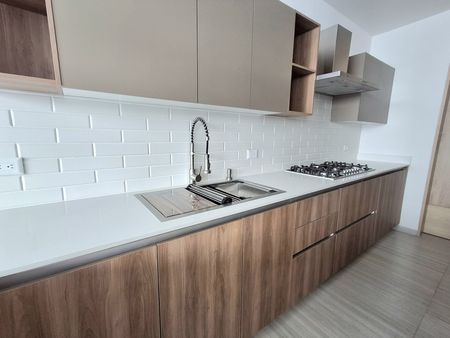 COCINA INTEGRAL CON BARRA DESAYUNADORA Y CUBIERTA DE CUARZO BLANCO